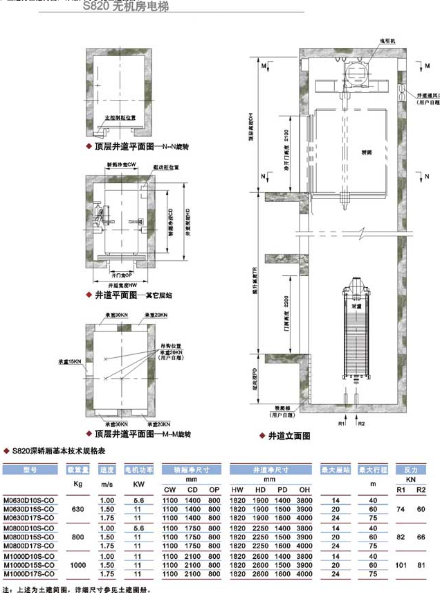 該系列產(chǎn)品采用目前世界上最先進(jìn)的電梯專用控制系統(tǒng)和交流變壓變頻(VVVF)調(diào)速系統(tǒng)。全電腦智能控制,可實(shí)現(xiàn)多微機(jī)、模塊化、網(wǎng)絡(luò)化控制;多協(xié)議模式通訊方式,使安裝、維保更快速、靈活;VVVF調(diào)速系統(tǒng)配以交流異步電動(dòng)機(jī),根據(jù)不同的運(yùn)行工況,可按照人體工程學(xué)預(yù)設(shè)最佳速度曲線,精確調(diào)整電動(dòng)機(jī)轉(zhuǎn)速,使電梯啟動(dòng)、運(yùn)行、停止時(shí)的速度變化在人們不知不覺中得以實(shí)現(xiàn),使乘客倍感舒適。此外,VVVF調(diào)速系統(tǒng)還能提供良好的平層準(zhǔn)確度,提高運(yùn)行效率,減少了系統(tǒng)能耗。無機(jī)房電梯與有機(jī)房電梯相比,節(jié)約建筑空間,降低建筑成本,使建筑物造型更加美觀;具有更高的井道空間利用率,運(yùn)行更穩(wěn)定。小機(jī)房電梯的機(jī)房面積同井道面積相同,同樣可以大量節(jié)約建筑空間。它們均采用無齒輪曳引機(jī),傳動(dòng)效率高,運(yùn)行耗能小,與普通曳引機(jī)相比可節(jié)省30~40%的耗電量,振動(dòng)小,噪音低,完善的安全保護(hù)確保電梯運(yùn)行安全可靠。S820/S830系列電梯最大提升高度為75米,最大的停站數(shù)為24層,速度為1.0~1.75米/秒,可廣泛應(yīng)用于中、低層提升高度的住宅樓及商務(wù)樓。