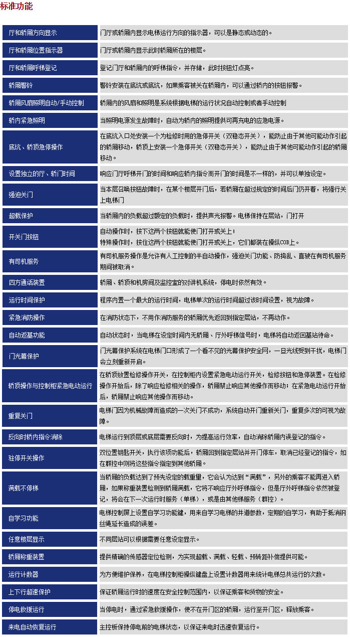 該系列產(chǎn)品采用目前世界上最先進(jìn)的電梯專用控制系統(tǒng)和交流變壓變頻(VVVF)調(diào)速系統(tǒng)。全電腦智能控制,可實(shí)現(xiàn)多微機(jī)、模塊化、網(wǎng)絡(luò)化控制;多協(xié)議模式通訊方式,使安裝、維保更快速、靈活;VVVF調(diào)速系統(tǒng)配以交流異步電動機(jī),根據(jù)不同的運(yùn)行工況,可按照人體工程學(xué)預(yù)設(shè)最佳速度曲線,精確調(diào)整電動機(jī)轉(zhuǎn)速,使電梯啟動、運(yùn)行、停止時的速度變化在人們不知不覺中得以實(shí)現(xiàn),使乘客倍感舒適。此外,VVVF調(diào)速系統(tǒng)還能提供良好的平層準(zhǔn)確度,提高運(yùn)行效率,減少了系統(tǒng)能耗。無機(jī)房電梯與有機(jī)房電梯相比,節(jié)約建筑空間,降低建筑成本,使建筑物造型更加美觀;具有更高的井道空間利用率,運(yùn)行更穩(wěn)定。小機(jī)房電梯的機(jī)房面積同井道面積相同,同樣可以大量節(jié)約建筑空間。它們均采用無齒輪曳引機(jī),傳動效率高,運(yùn)行耗能小,與普通曳引機(jī)相比可節(jié)省30~40%的耗電量,振動小,噪音低,完善的安全保護(hù)確保電梯運(yùn)行安全可靠。S820/S830系列電梯最大提升高度為75米,最大的停站數(shù)為24層,速度為1.0~1.75米/秒,可廣泛應(yīng)用于中、低層提升高度的住宅樓及商務(wù)樓。
